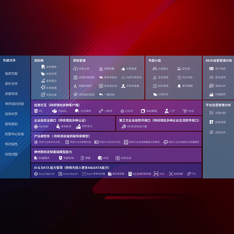 医疗器械产品上市前,,,要熟悉严格与繁复评审标准,,整理分析监管机构指导文件中的海量信息。。。企业急需一个智能化解决方案,,,提升知识管理效率,,,,提高评审通过率,,,,以提升其市场竞争力。。。
